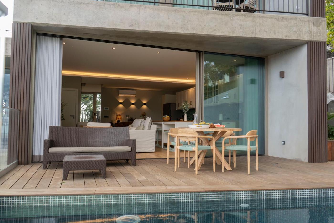 Two-Bedroom Apartment. The pool with a view is a top feature of this apartment. Boasting a private entrance, this air-conditioned apartment comes with 1 living room, 2 separate bedrooms and 3 bathrooms with a shower and a hairdryer. In the fully equipped kitchen, guests will find a stovetop, a refrigerator, a dishwasher and kitchenware. The spacious apartment features a washing machine, a tea and coffee maker, a seating area as well as a terrace with sea views. The unit has 4 beds.