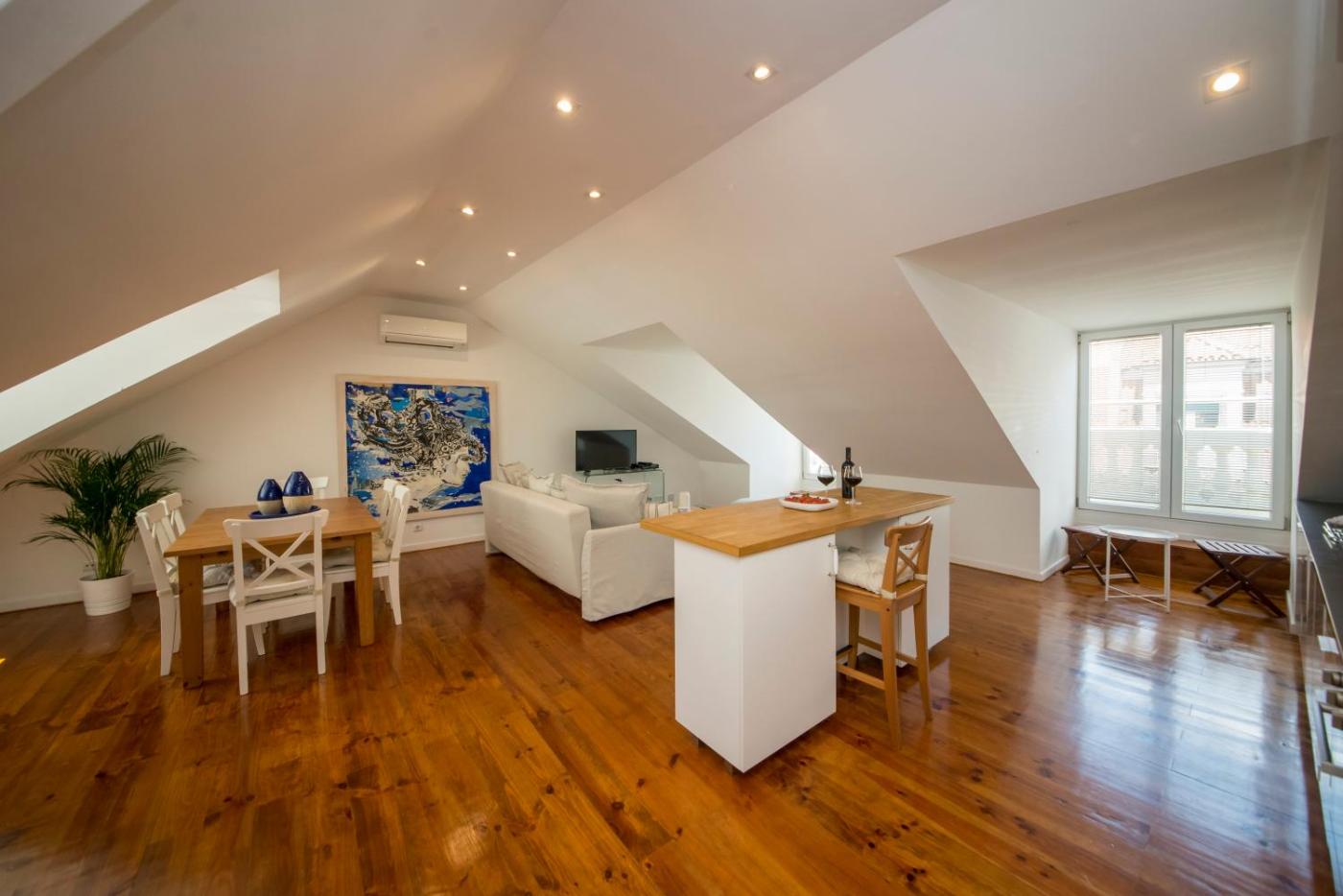 In the centre of Lisbon, located within a short distance of Dona Maria II National Theatre and Commerce Square, A Captivating Apartment close to River Tagus in Lisbon offers free WiFi, air conditioning and household amenities such as a dishwasher and coffee machine. It is situated 1 km from Rossio and provides a lift. The property is non-smoking and is1.7 km from St. Georges Castle.